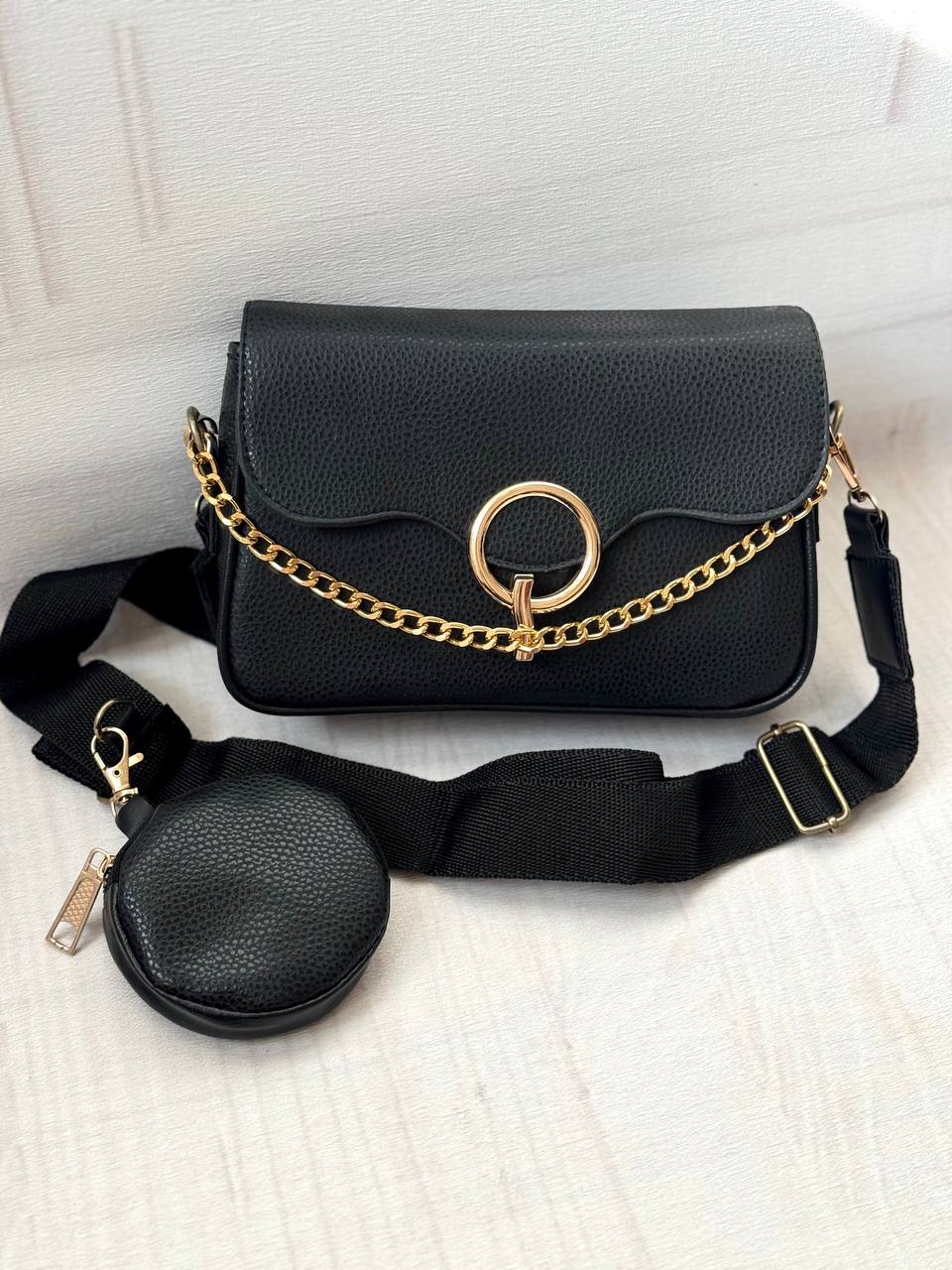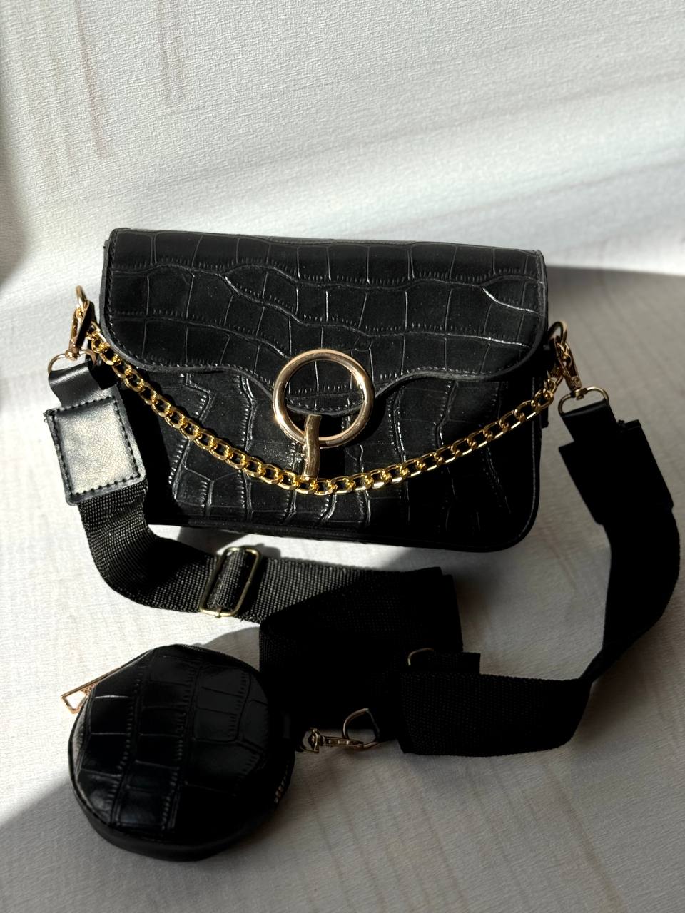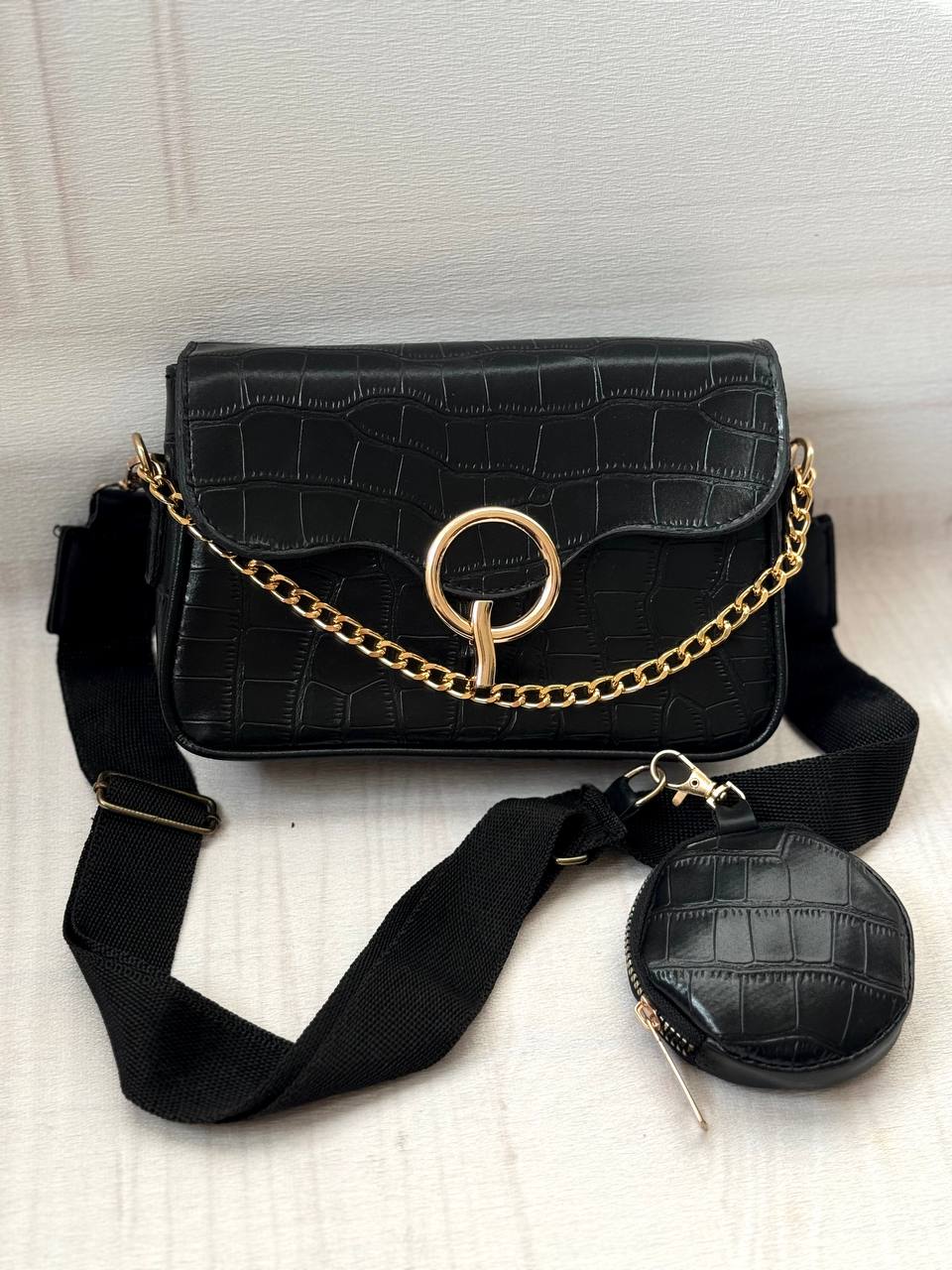 کیف جلو سگک دار زنانه دارای بند پهن و یک کیف کوچیک